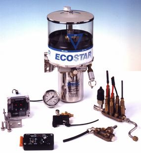 The ECOSTAR® automatic grease lubrication system consists of a grease pump, powered by air, hydraulically or electrically, manifolds with meters, electronic pulse generators, control equipment and the necessary connections and mountings.